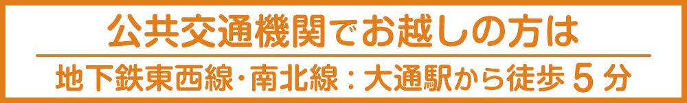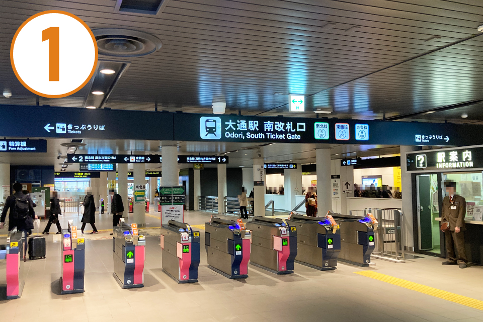 ①地下鉄東西線・南北線【大通駅】の南改札口から出ます。