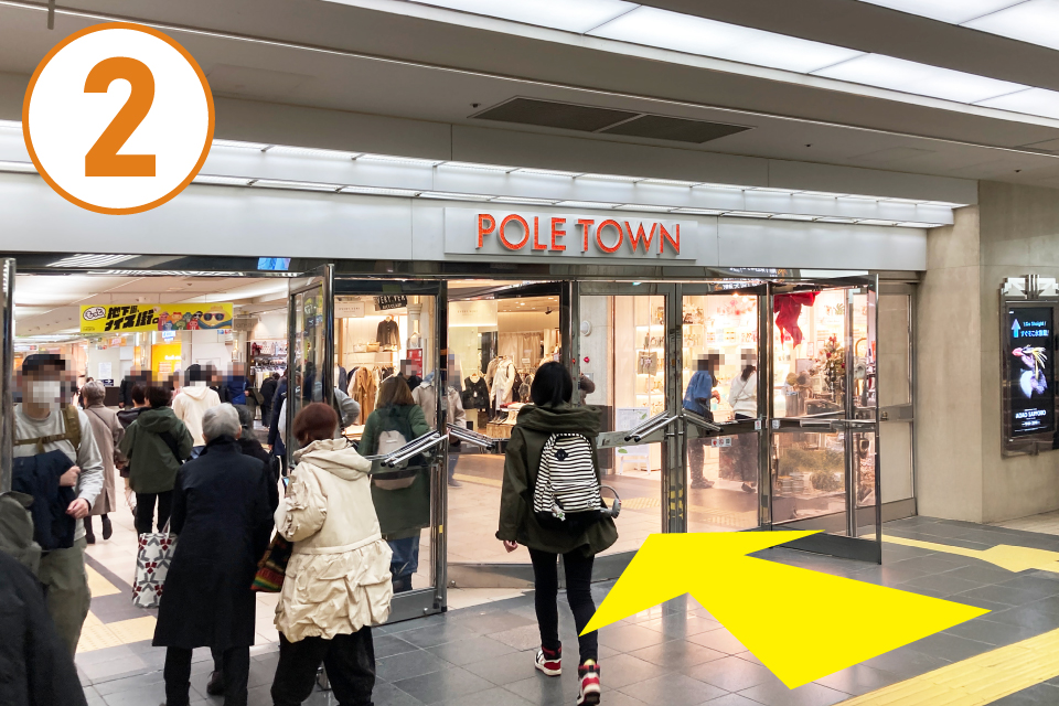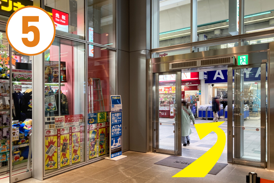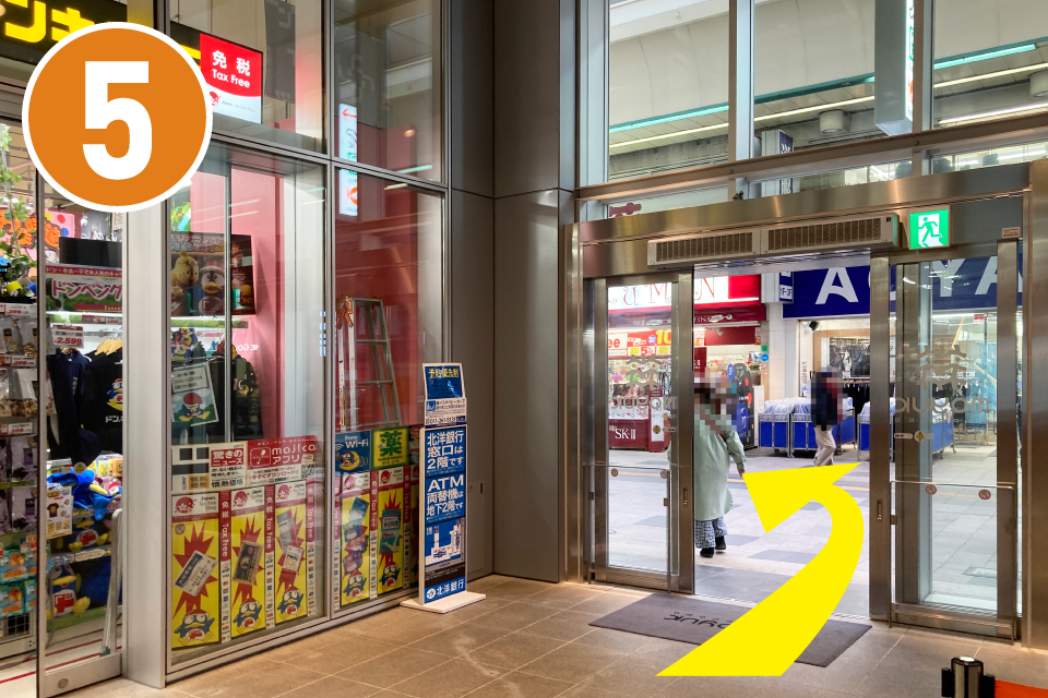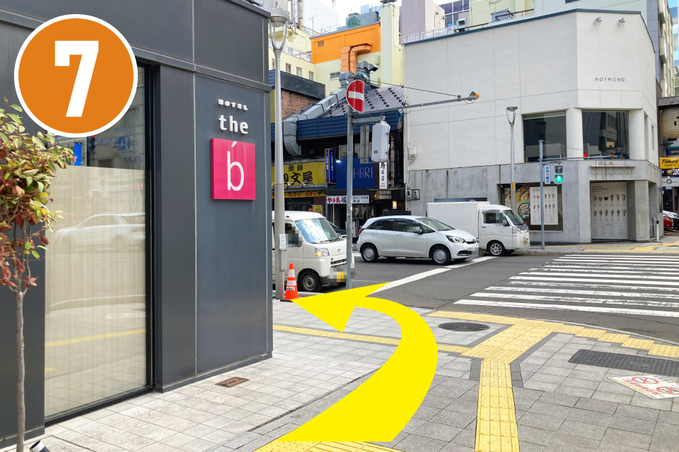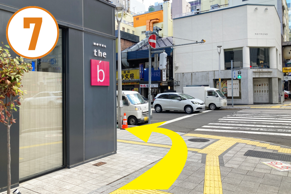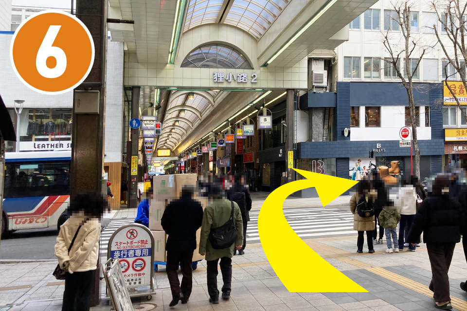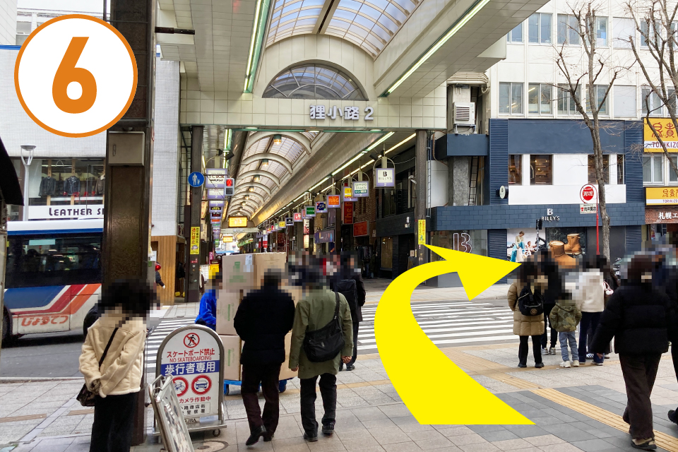 ⑥狸小路2丁目までの横断歩道を渡り、すぐ右に曲がります。