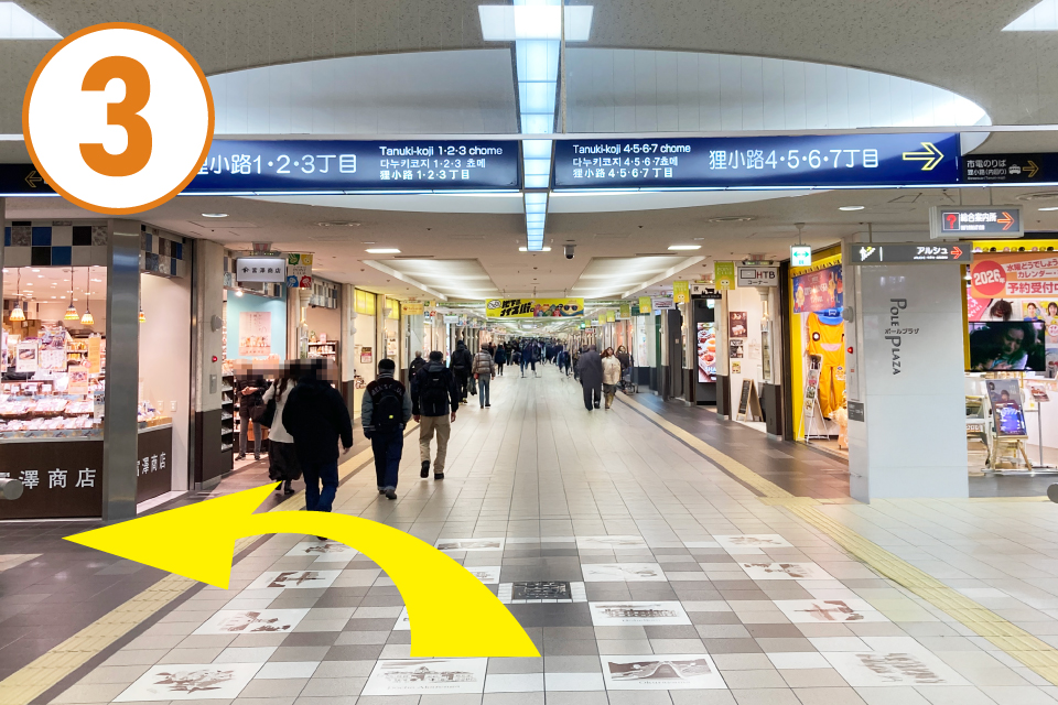 ⑤狸小路に出てすぐ左に曲がり、まっすぐ進みます。